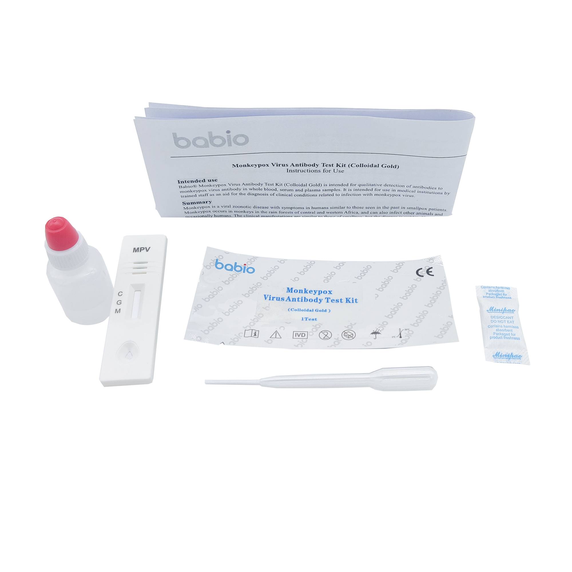 Babio® Monkeypox Virus Antibody Test Kit (Colloidal Gold) သည် သွေးတစ်ခုလုံး၊ သွေးရည်ကြည်နှင့် ပလာစမာနမူနာများတွင် မျောက်ကျောက်ဗိုင်းရပ်စ် ပဋိပစ္စည်း၏ ပဋိပစ္စည်း၏ အရည်အသွေးကို ရှာဖွေတွေ့ရှိရန်အတွက် ရည်ရွယ်ပါသည်။ ၎င်းကို မျောက်ကျောက်ဗိုင်းရပ်စ်ပိုး ကူးစက်မှုနှင့် ဆက်စပ်သော ဆေးဘက်ဆိုင်ရာ အခြေအနေများကို ရှာဖွေဖော်ထုတ်ရာတွင် အထောက်အကူအဖြစ် လေ့ကျင့်ထားသော ဝန်ထမ်းများမှ ဆေးဘက်ဆိုင်ရာ အဖွဲ့အစည်းများတွင် အသုံးပြုရန် ရည်ရွယ်ပါသည်။