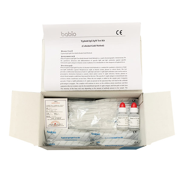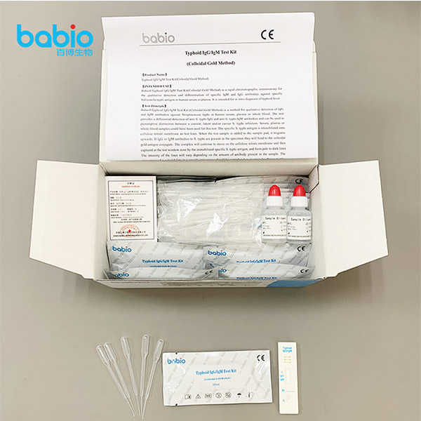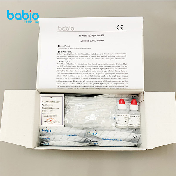 Babio® Typhoid IgG/IgM Test Kit (Colloidal Gold Method) သည် လျင်မြန်သော chromatographic immunoassay တစ်ခုဖြစ်သည်။